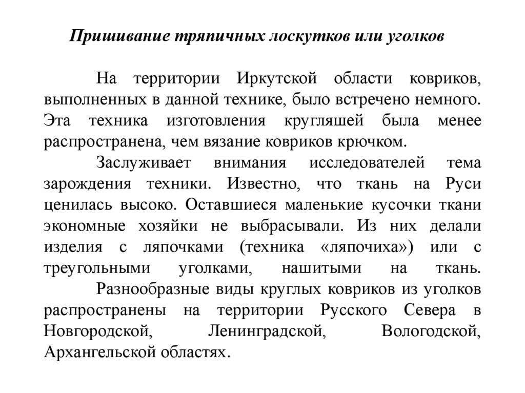Сборник из серии «Этнография Иркутской области»«Тряпичные коврики. Чичковское плетение» содержит