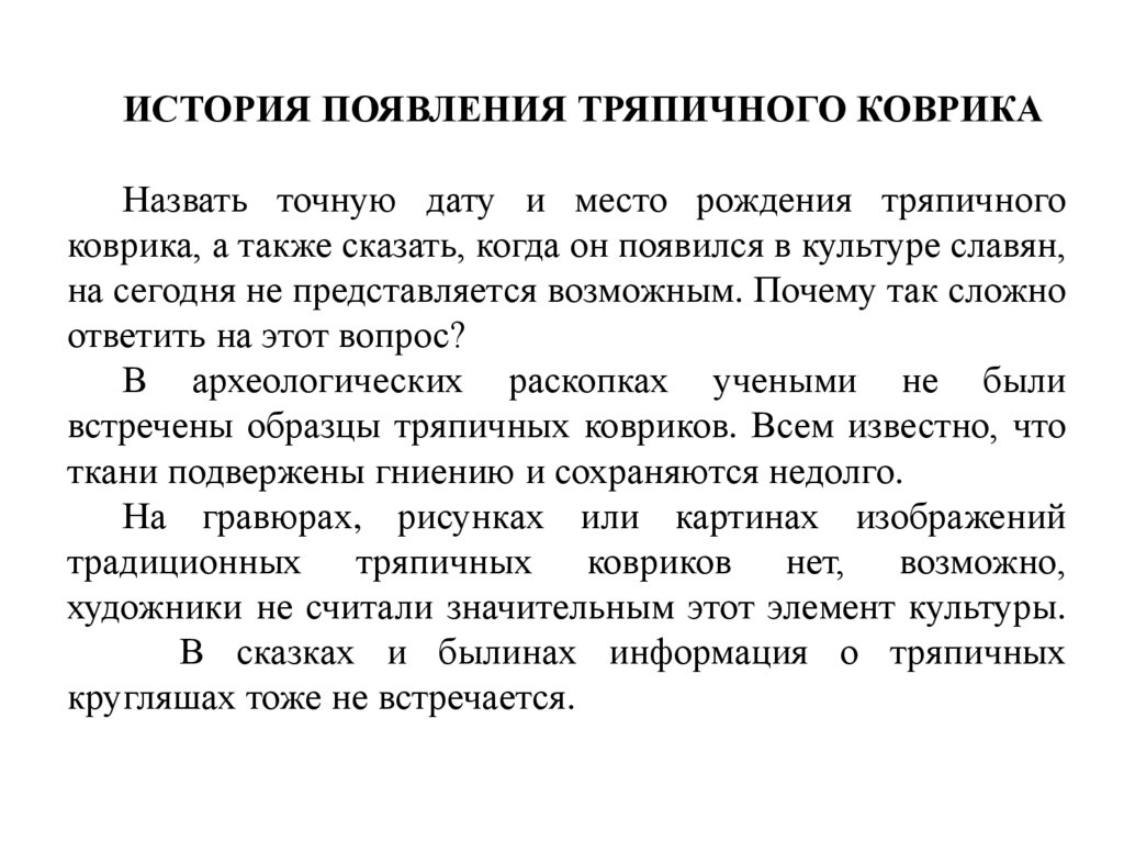 коврика, а также сказать, когда он появился в культуре славян,
