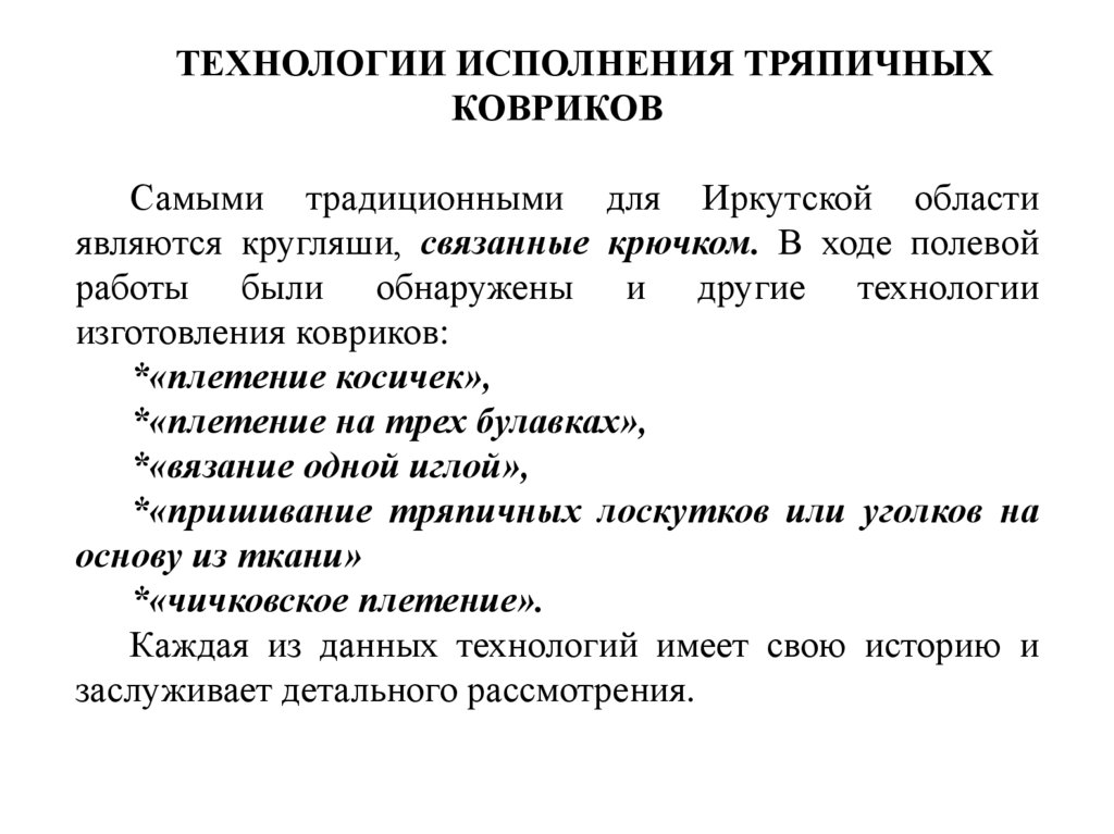 ТЕХНОЛОГИИ ИСПОЛНЕНИЯ ТРЯПИЧНЫХКОВРИКОВ