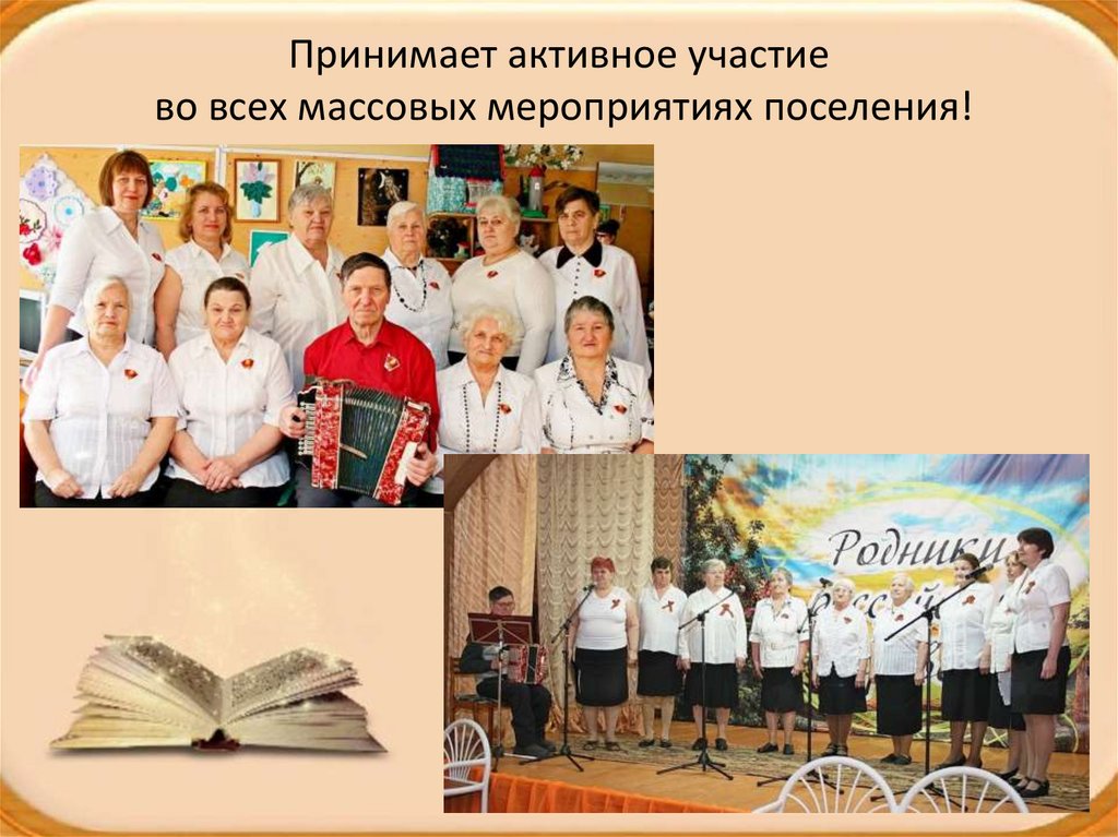 Принимает активное участиево всех массовых мероприятиях поселения!