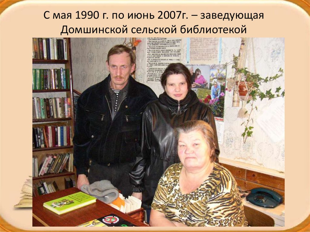 С мая 1990 г. по июнь 2007г. – заведующаяДомшинской сельской библиотекой