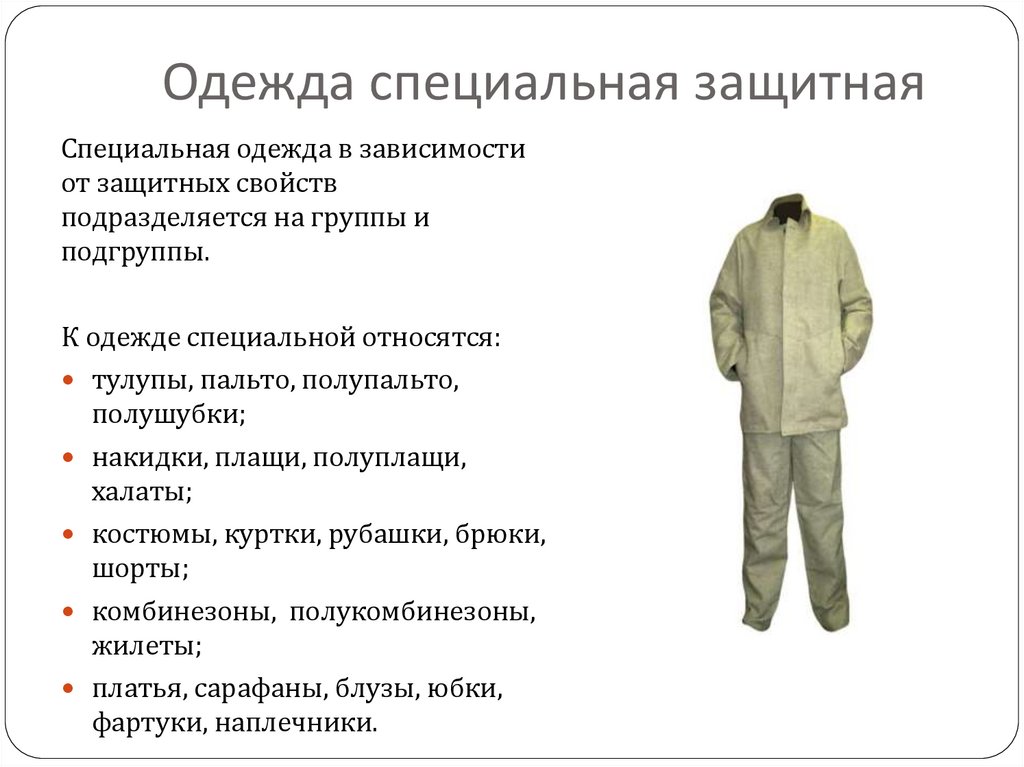 Одежда специальная защитнаяСпециальная одежда в зависимости