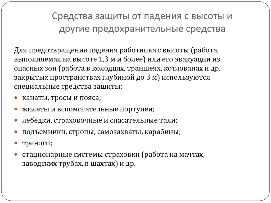 Средства защиты от падения с высоты идругие предохранительные средства