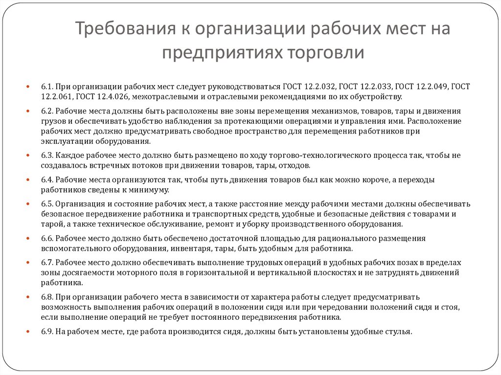 Требования к организации рабочих мест напредприятиях торговли