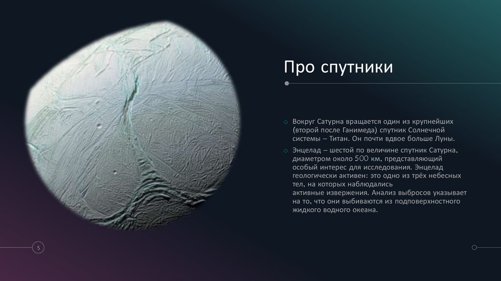 Про спутникиo Вокруг Сатурна вращается один из крупнейших