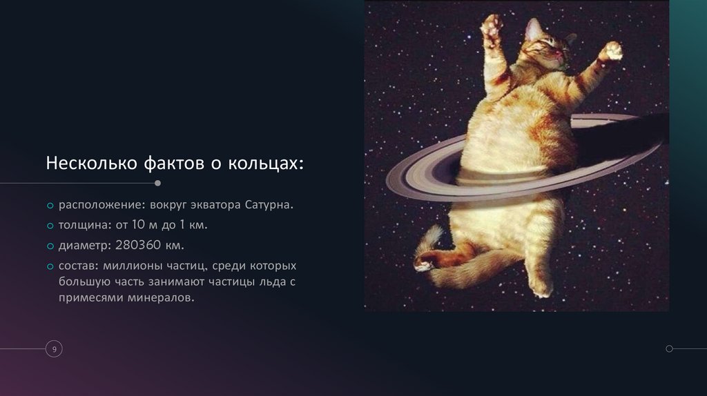 Несколько фактов о кольцах:o расположение: вокруг экватора Сатурна.