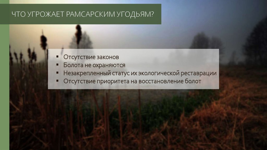 ЧТО УГРОЖАЕТ РАМСАРСКИМ УГОДЬЯМ?Отсутствие законов