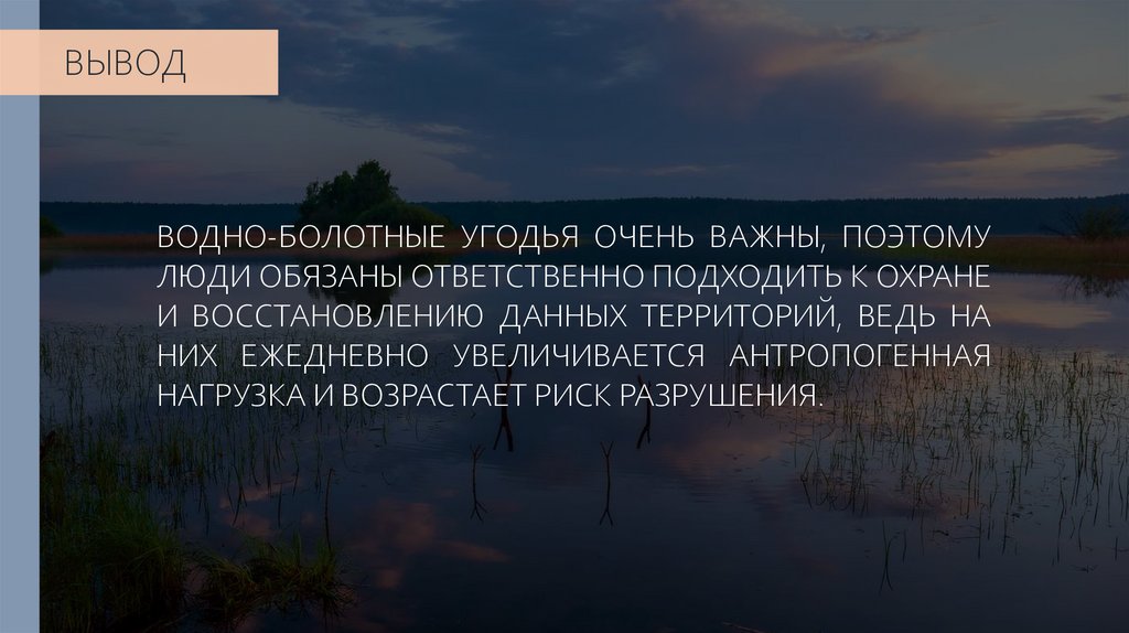 ВЫВОДВОДНО-БОЛОТНЫЕ УГОДЬЯ ОЧЕНЬ ВАЖНЫ, ПОЭТОМУ