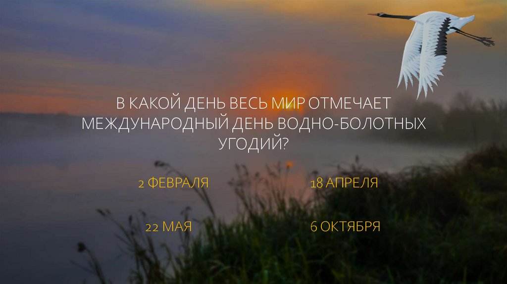 В КАКОЙ ДЕНЬ ВЕСЬ МИР ОТМЕЧАЕТМЕЖДУНАРОДНЫЙ ДЕНЬ ВОДНО-БОЛОТНЫХ
