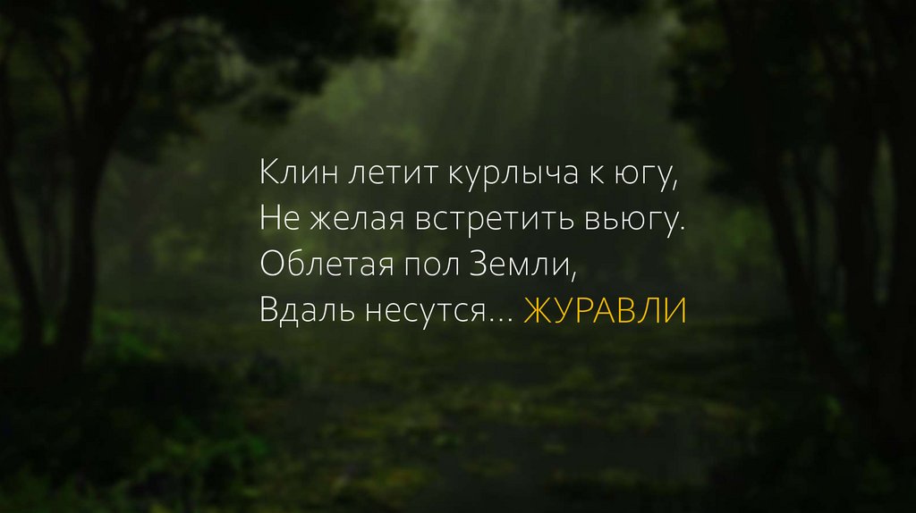 Клин летит курлыча к югу,Не желая встретить вьюгу.