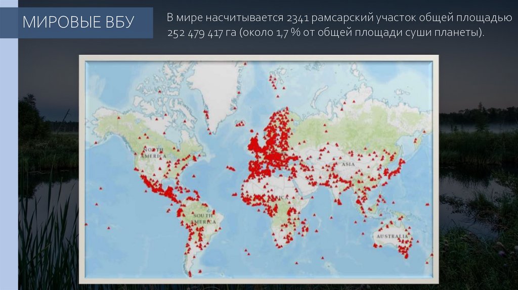 МИРОВЫЕ ВБУВ мире насчитывается 2341 рамсарский участок общей площадью