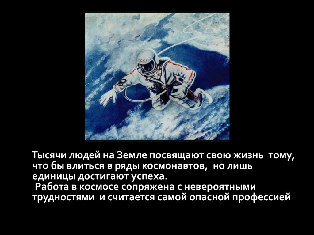 Тысячи людей на Земле посвящают свою жизнь тому,что бы влиться в ряды космонавтов, но лишь