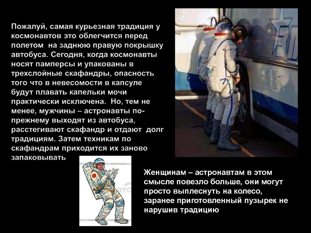 Женщинам – астронавтам в этомсмысле повезло больше, они могут