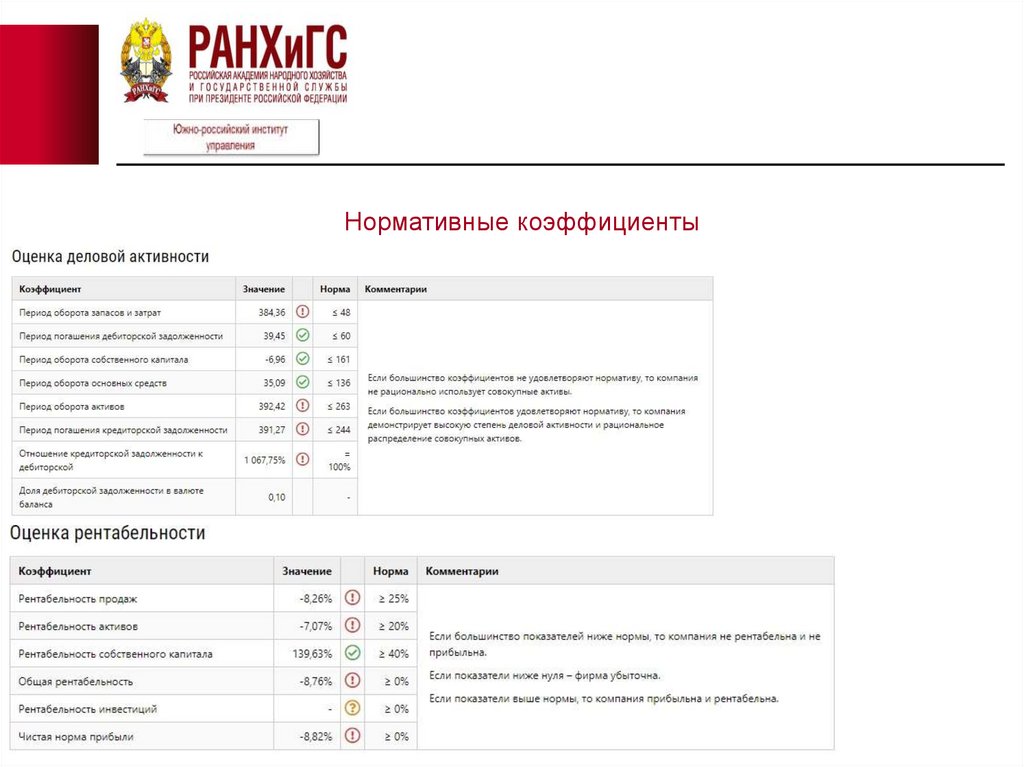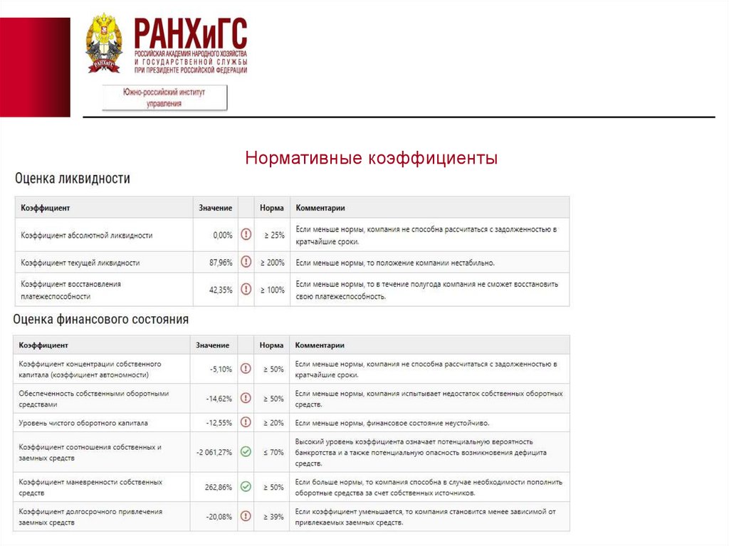 Нормативные коэффициенты12.