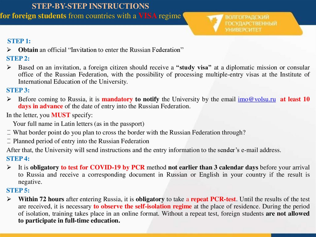 STEP-BY-STEP INSTRUCTIONSfor foreign students from countries with a VISA regime