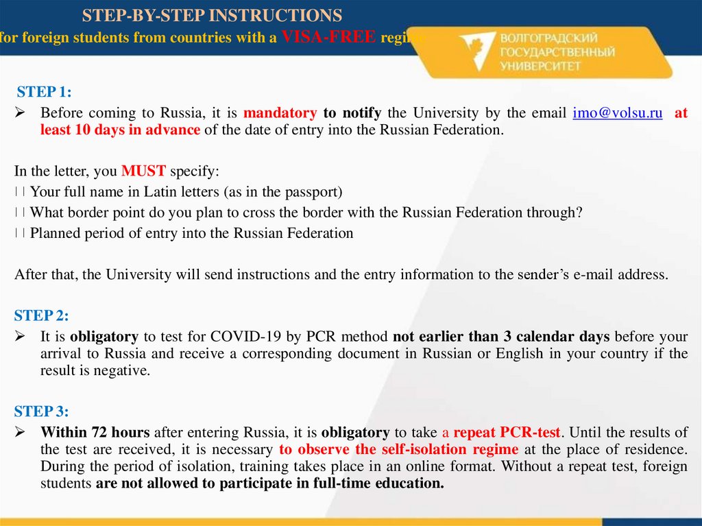 STEP-BY-STEP INSTRUCTIONSfor foreign students from countries with a VISA-FREE regime