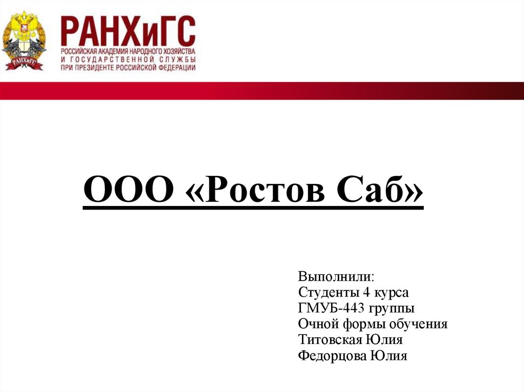 СОБЫТИЯ ООО «Ростов Саб»01.11.2007 Создание