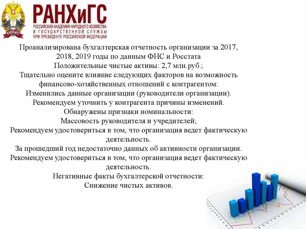 Проанализирована бухгалтерская отчетность организации за 2017,2018, 2019 годы по данным ФНС и Росстата. Возможно следует