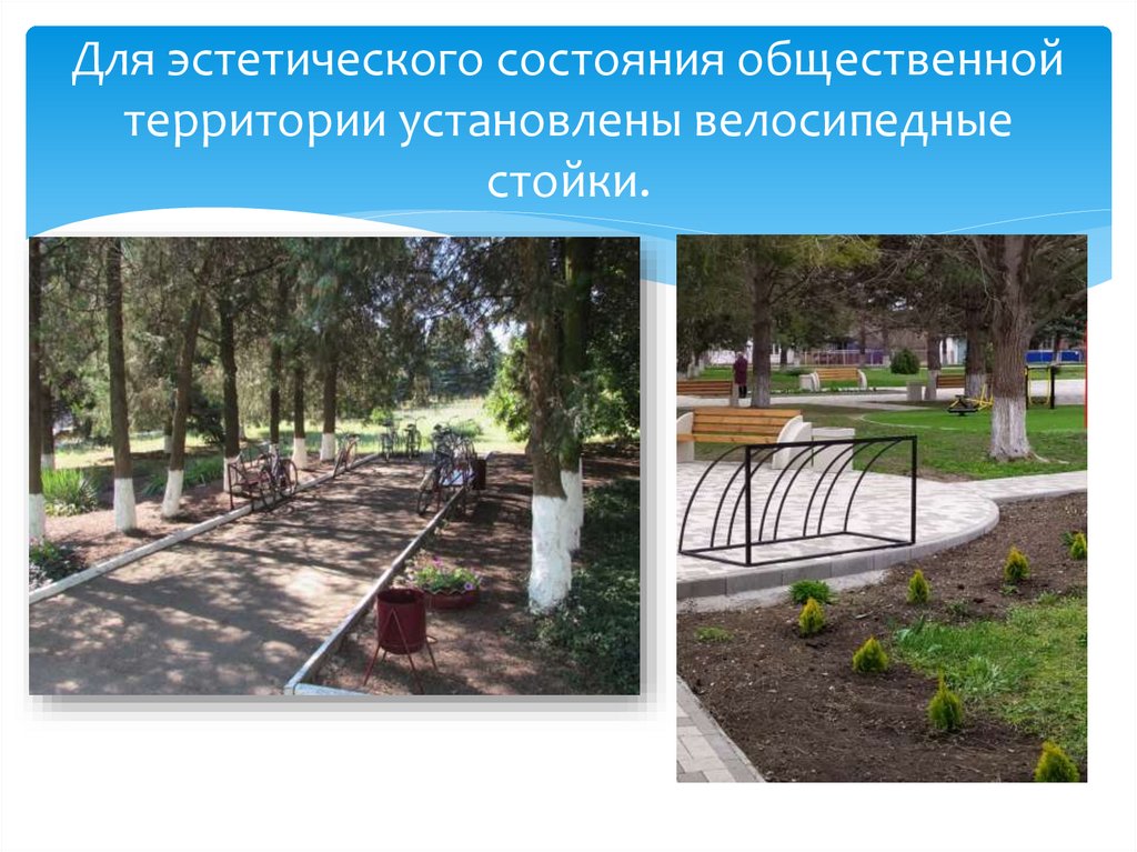 Для эстетического состояния общественнойтерритории установлены велосипедные