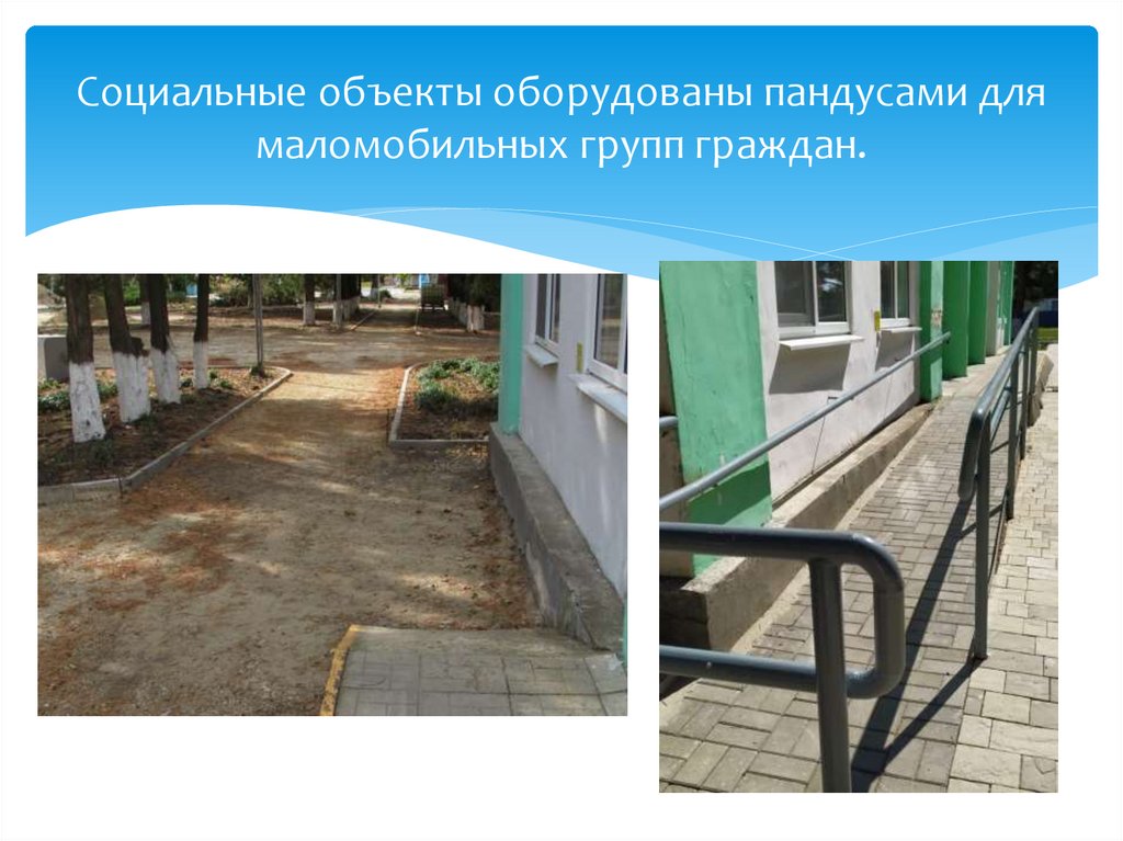 Социальные объекты оборудованы пандусами длямаломобильных групп граждан.