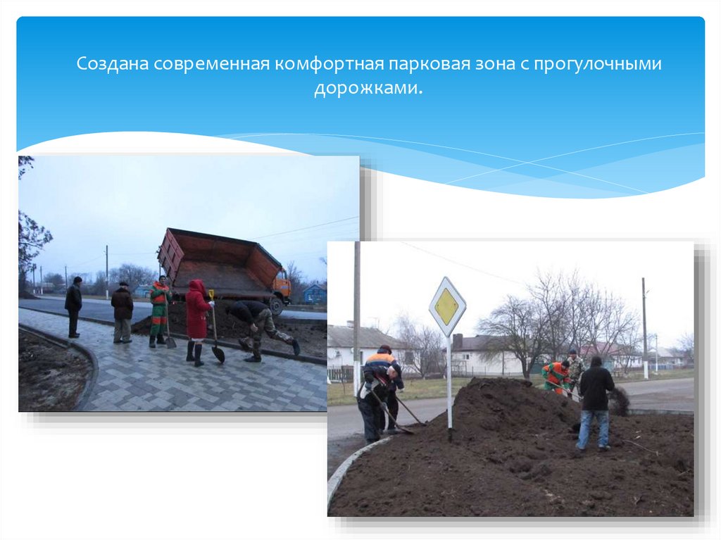 Создана современная комфортная парковая зона с прогулочнымидорожками.