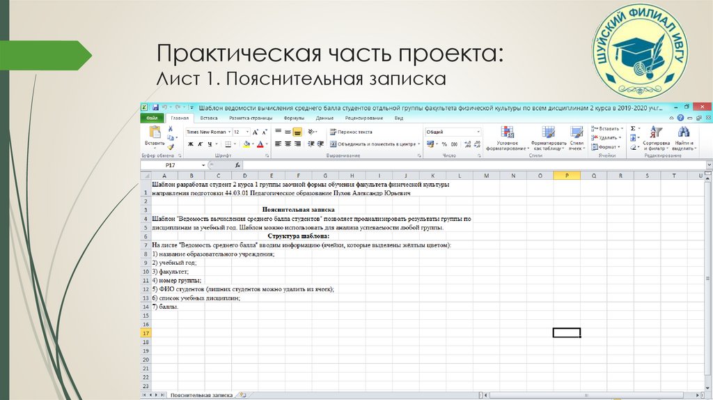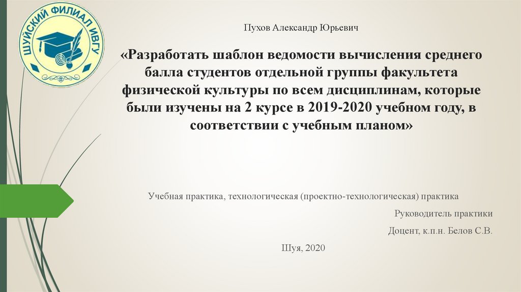 Пухов Александр Юрьевич«Разработать шаблон ведомости вычисления среднего