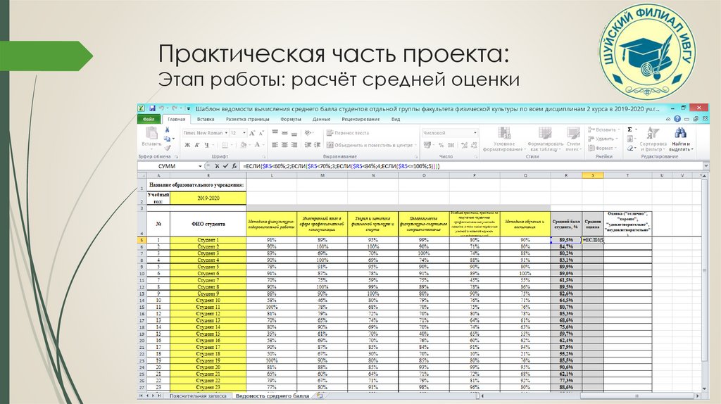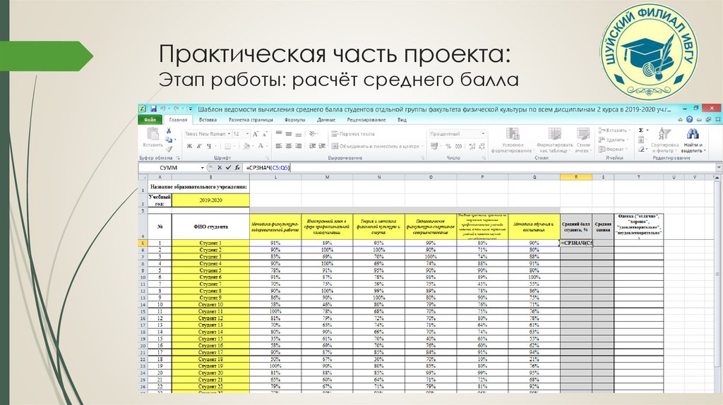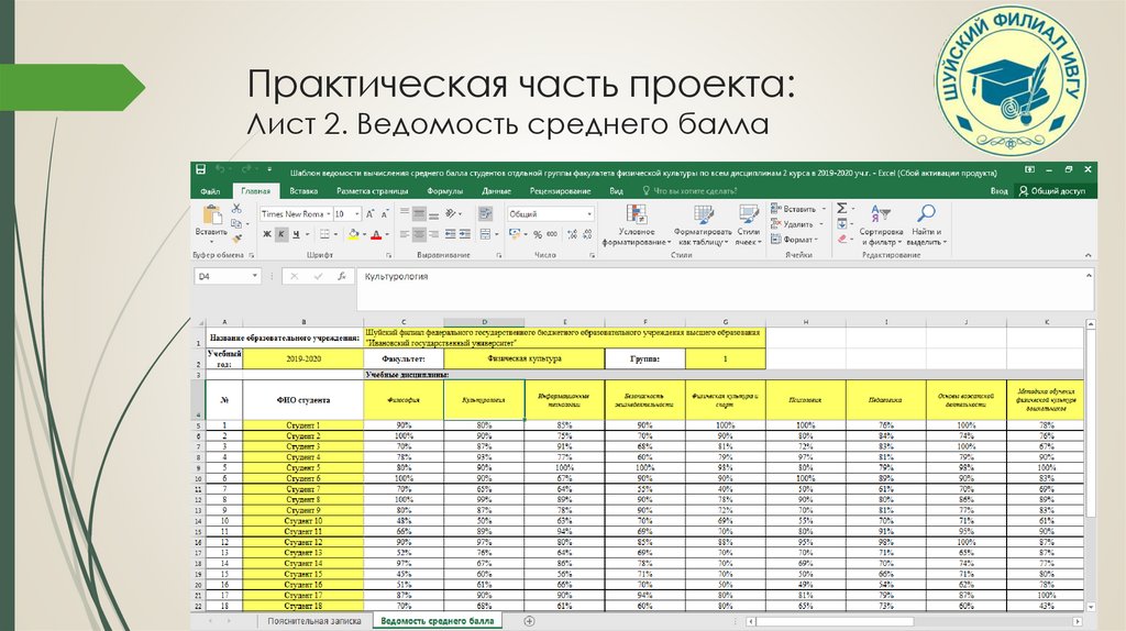 Практическая часть проекта:Лист 2. Ведомость среднего балла