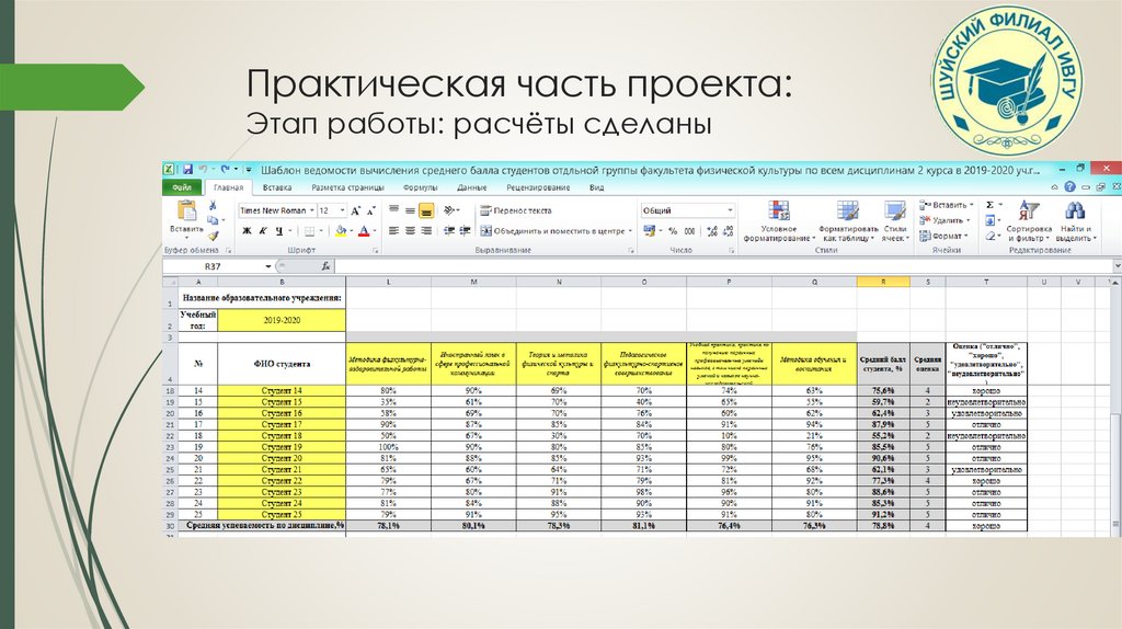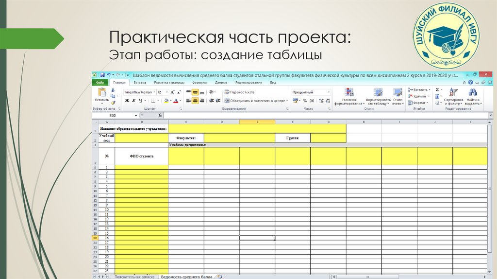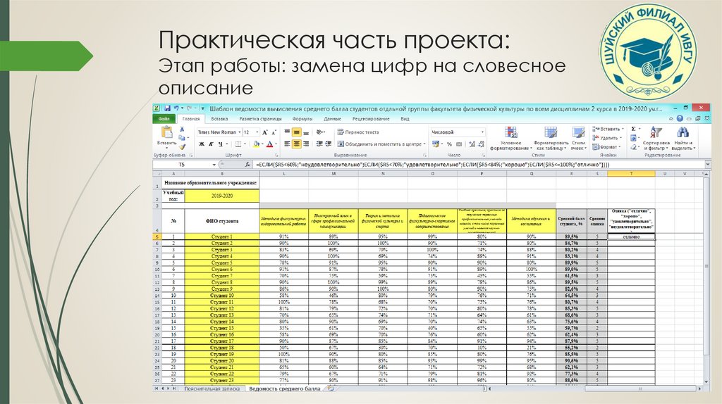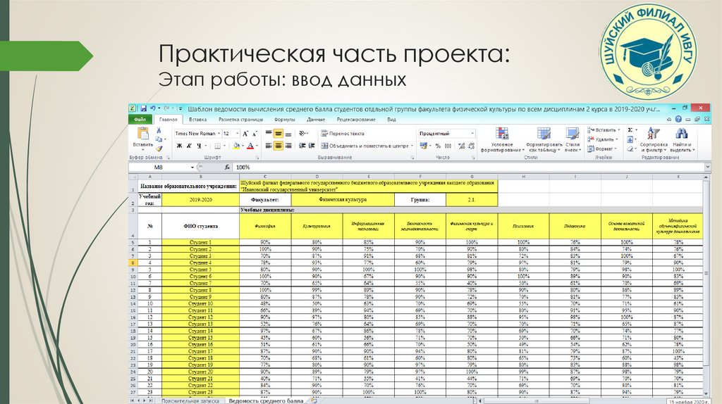 Разработка шаблона ведомости вычисления среднего балла студентов группы факультета физической культуры по всем дисциплинам