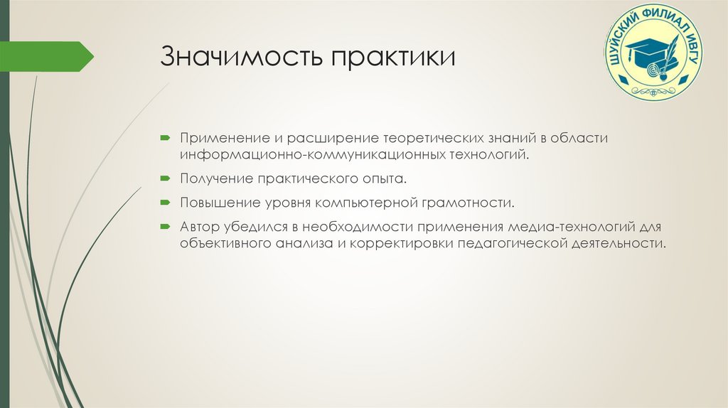 Значимость практикиПрименение и расширение теоретических знаний в области