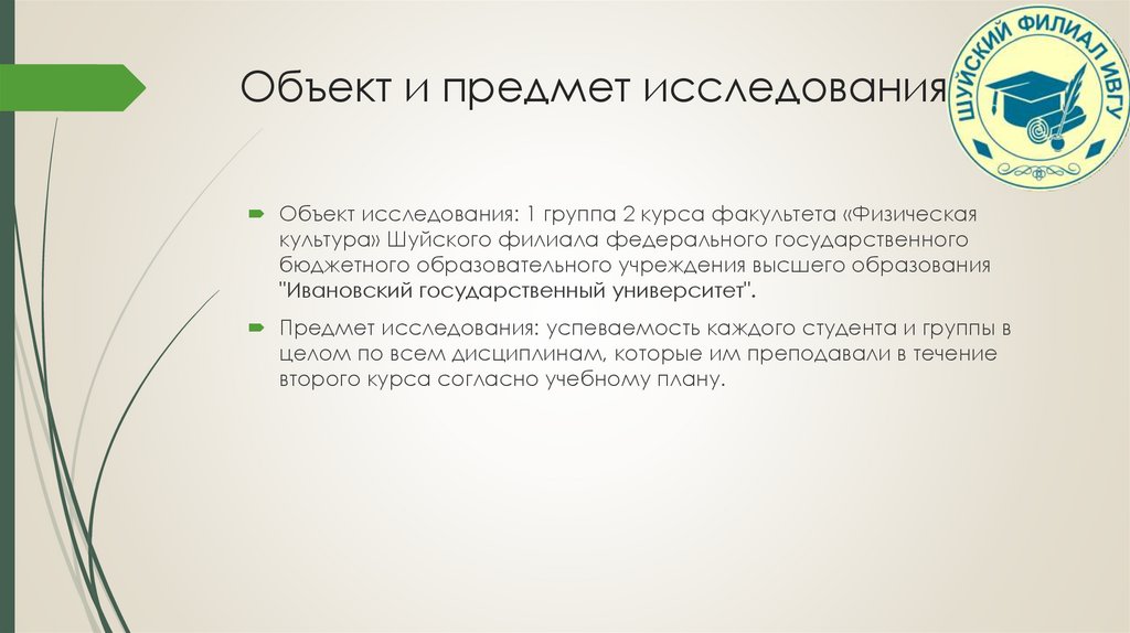 Объект и предмет исследованияОбъект исследования: 1 группа 2 курса факультета «Физическая