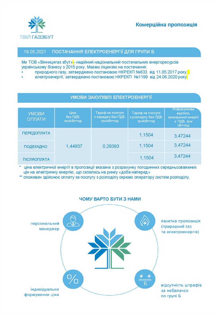 Комерційна пропозиція від ТОВ «Вінницягаз збут»