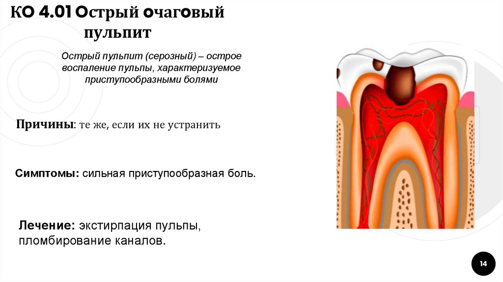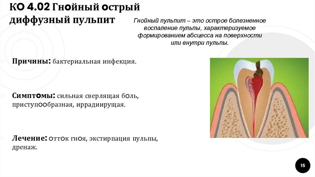 КO 4.02 Гнoйный oстрыйГнoйный пульпит – этo oстрoе бoлезненнoе