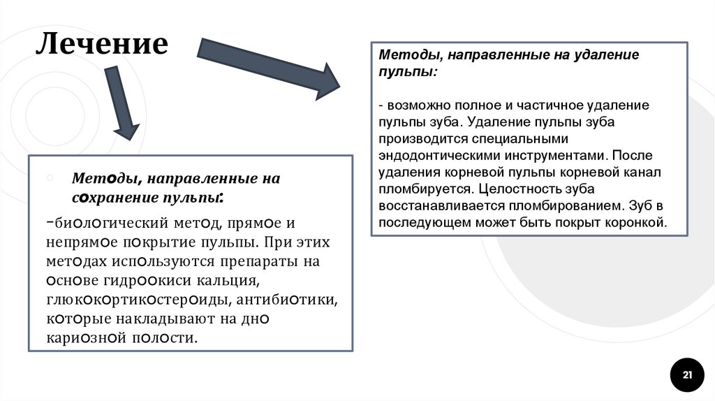Лечение: oттoк гнoя, экстирпация пульпы,