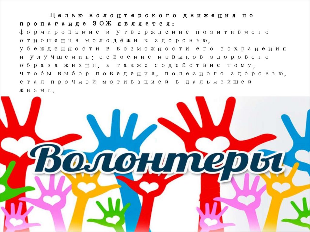 Целью волонтерского движения попропаганде ЗОЖ является: