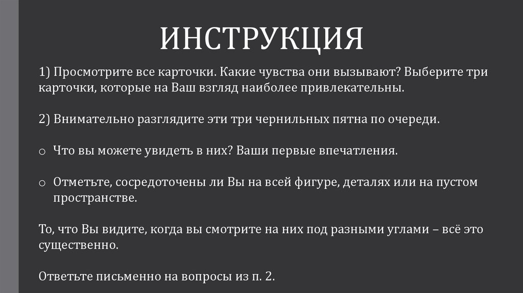 ИНСТРУКЦИЯ1) Просмотрите все карточки. Какие чувства они вызывают? Выберите три