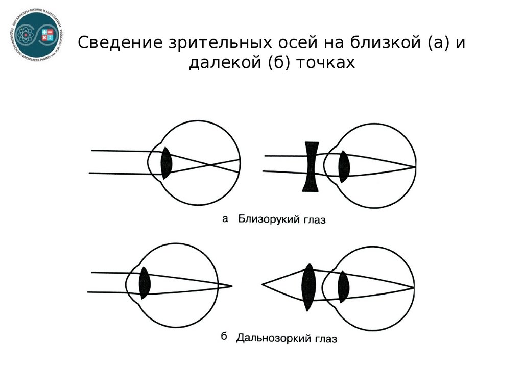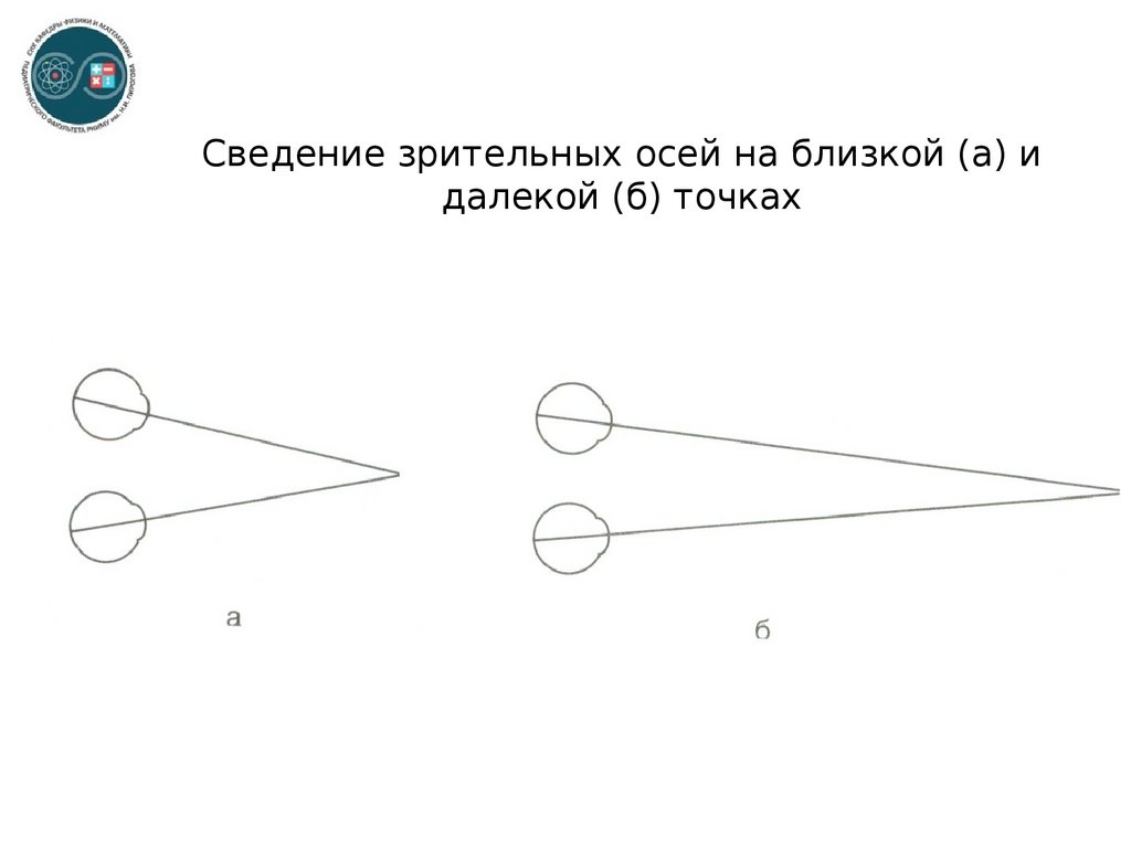 Сведение зрительных осей на близкой (а) идалекой (б) точках