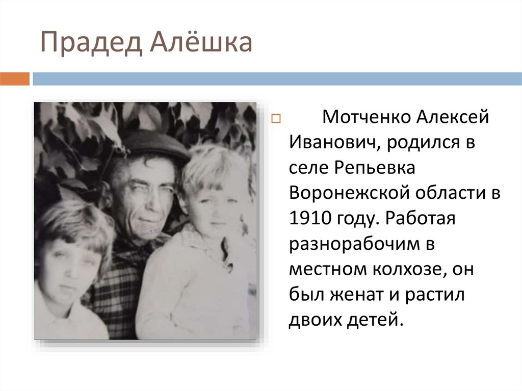 Великая Отечественная война в судьбе семьи Мотченко Ж