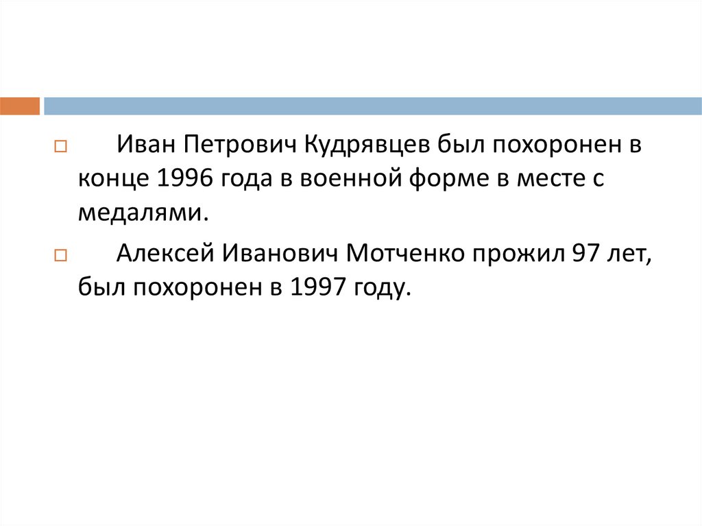 Иван Петрович Кудрявцев был похоронен вконце 1996 года в военной форме в месте с