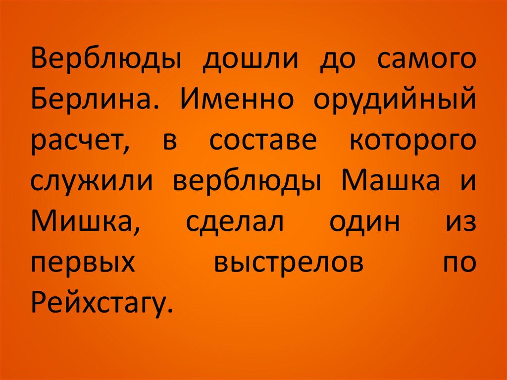 Верблюды дошли до самогоБерлина. Именно орудийный