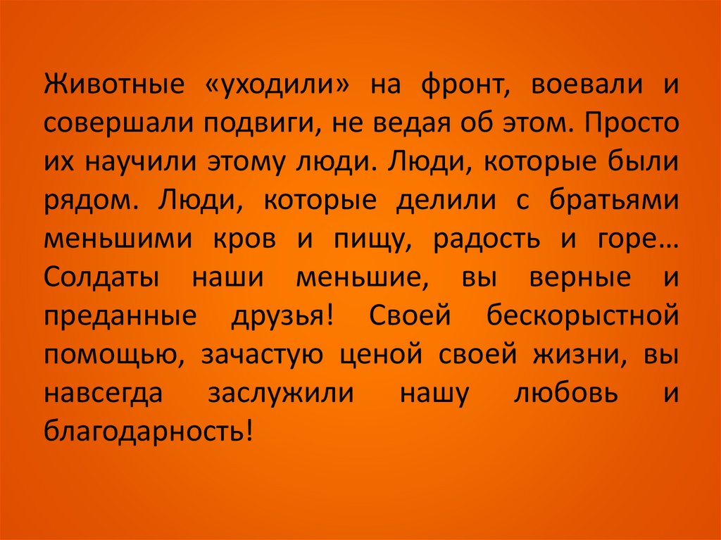 Животные «уходили» на фронт, воевали исовершали подвиги, не ведая об этом. Просто
