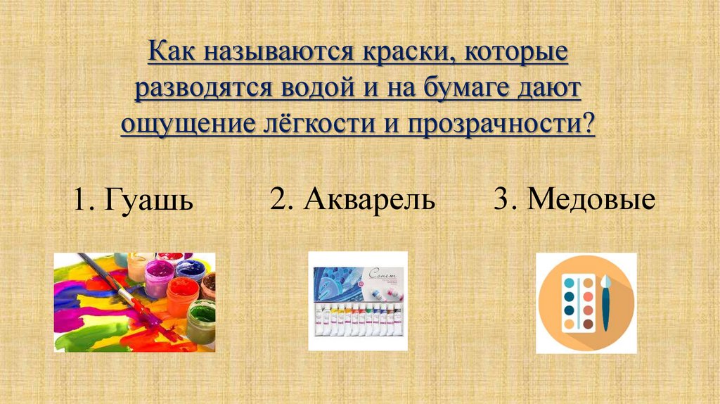 Как называются краски, которыеразводятся водой и на бумаге дают