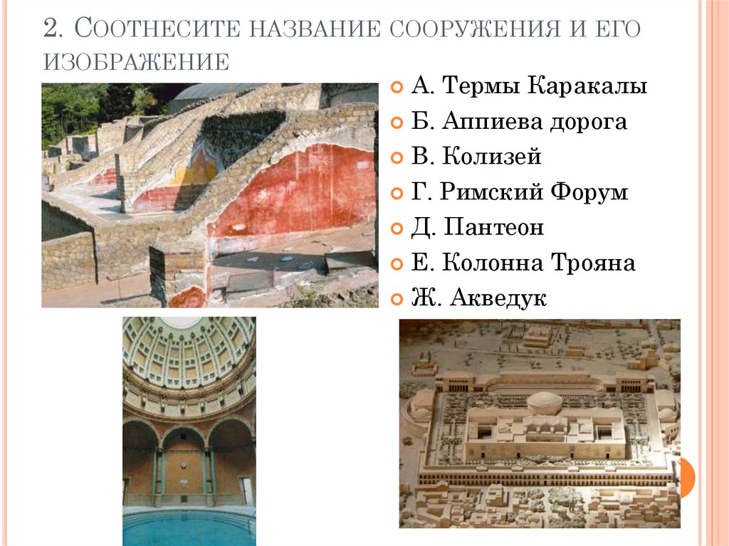2. СООТНЕСИТЕ НАЗВАНИЕ СООРУЖЕНИЯ И ЕГОИЗОБРАЖЕНИЕ