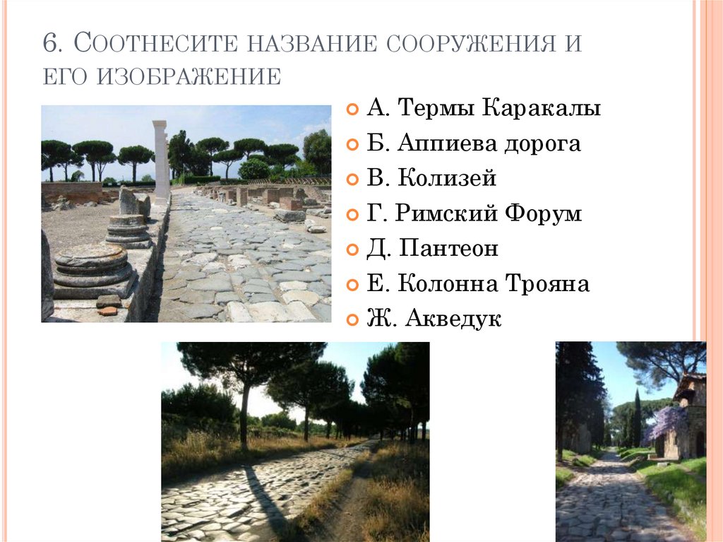 6. СООТНЕСИТЕ НАЗВАНИЕ СООРУЖЕНИЯ ИЕГО ИЗОБРАЖЕНИЕ