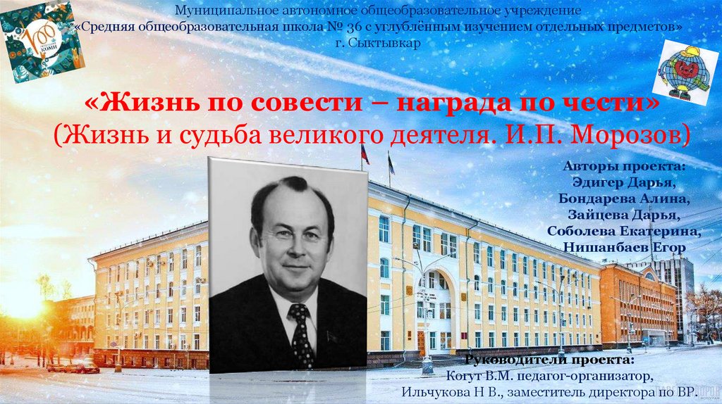великих делах И.П. Морозова для нашего города и республики.