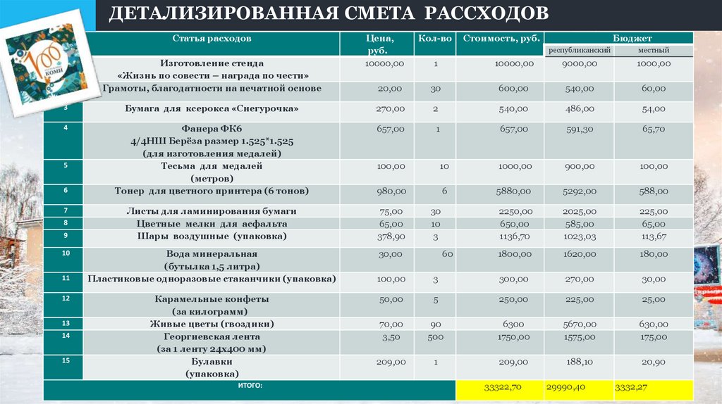 ДЕТАЛИЗИРОВАННАЯ СМЕТА РАССХОДОВ№
