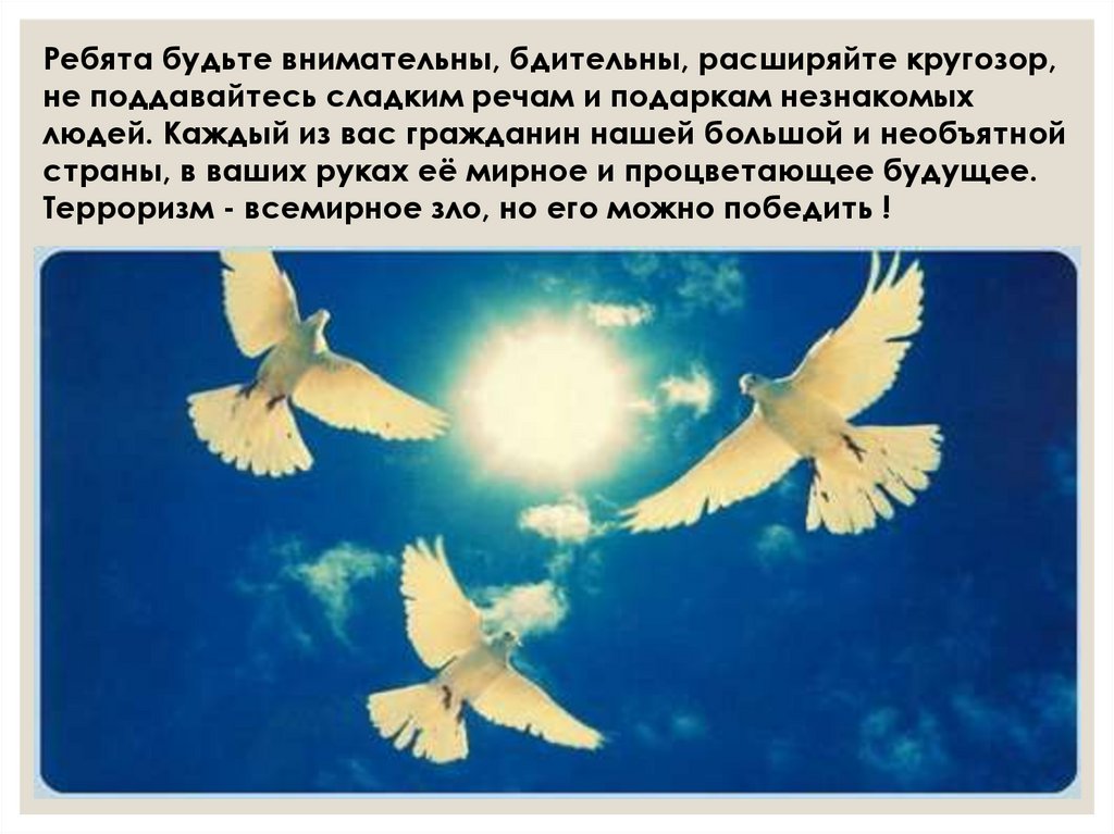 Ребята будьте внимательны, бдительны, расширяйте кругозор,не поддавайтесь сладким речам и подаркам незнакомых