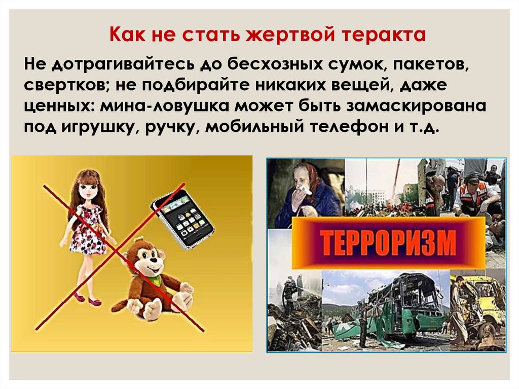 Как не стать жертвой терактаО подозрительных предметах сообщайте в