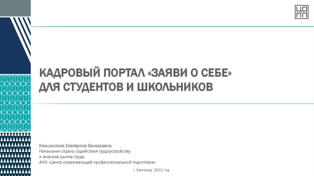 КАДРОВЫЙ ПОРТАЛ «ЗАЯВИ О СЕБЕ»ДЛЯ СТУДЕНТОВ И ШКОЛЬНИКОВ