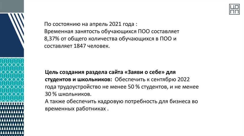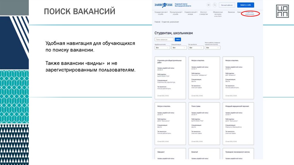 Кадровый портал «Заяви о себе» для студентов и школьников. Временная занятость обучающихся
