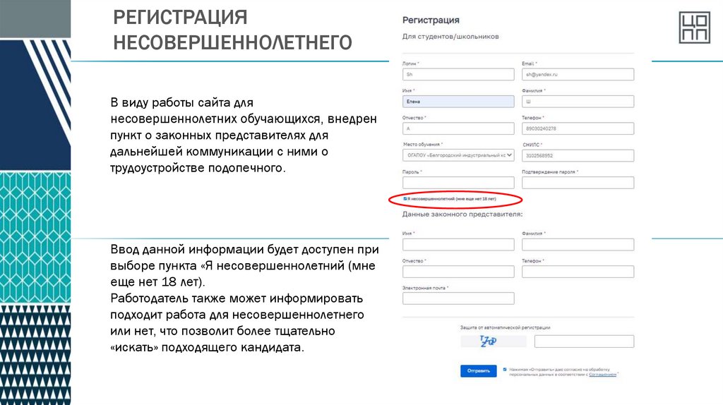 РЕГИСТРАЦИЯНЕСОВЕРШЕННОЛЕТНЕГО